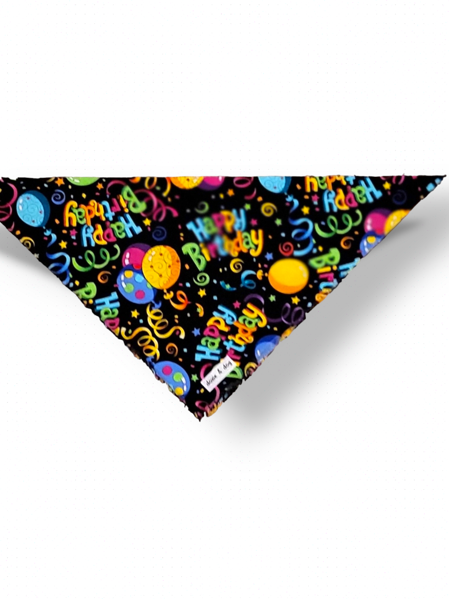 Our 'Happy Birthday' with streamers hand-frayed bandana is made using soft cotton. Each uniquely designed, bandana can be tied, snapped or both to get the perfect fit for your fur baby. You can also roll it down, tie a secure knot and snap for extra security. Proudly crafted in Massachusetts. Complete the look with a matching scrunchie or bandana.